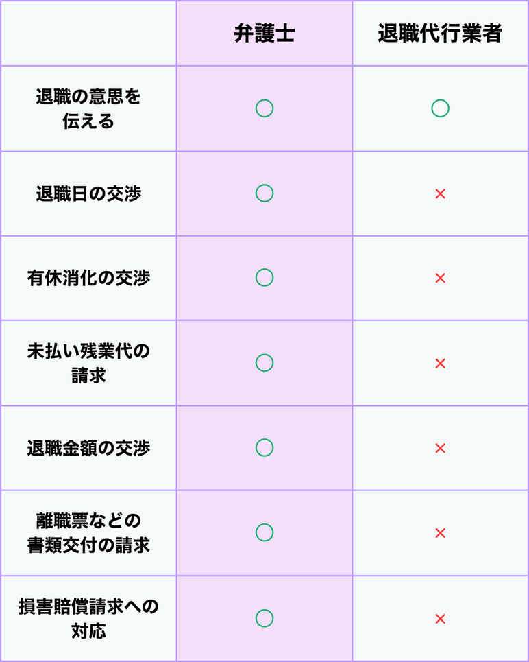 | 会社との交渉 | ✕ (非弁行為のため) | ◯ |